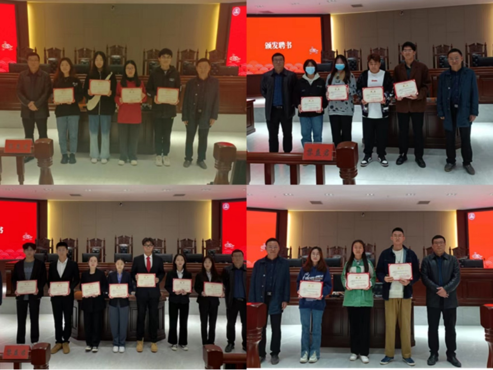 随后,连光阳副院长与黎益君副书记为四个社团新一届负责人颁发聘书,并合照留影。模拟法庭训练营营长陈佳诚作为新一届社团负责人代表进行表态发言,代表全体成员对到场的两位老师表示感谢,并介绍了接下来各社团在法治月系列活动中的具体安排。他相信,在学院领导的支持下,大家齐心协力,四大社团的前路将会更加光明。