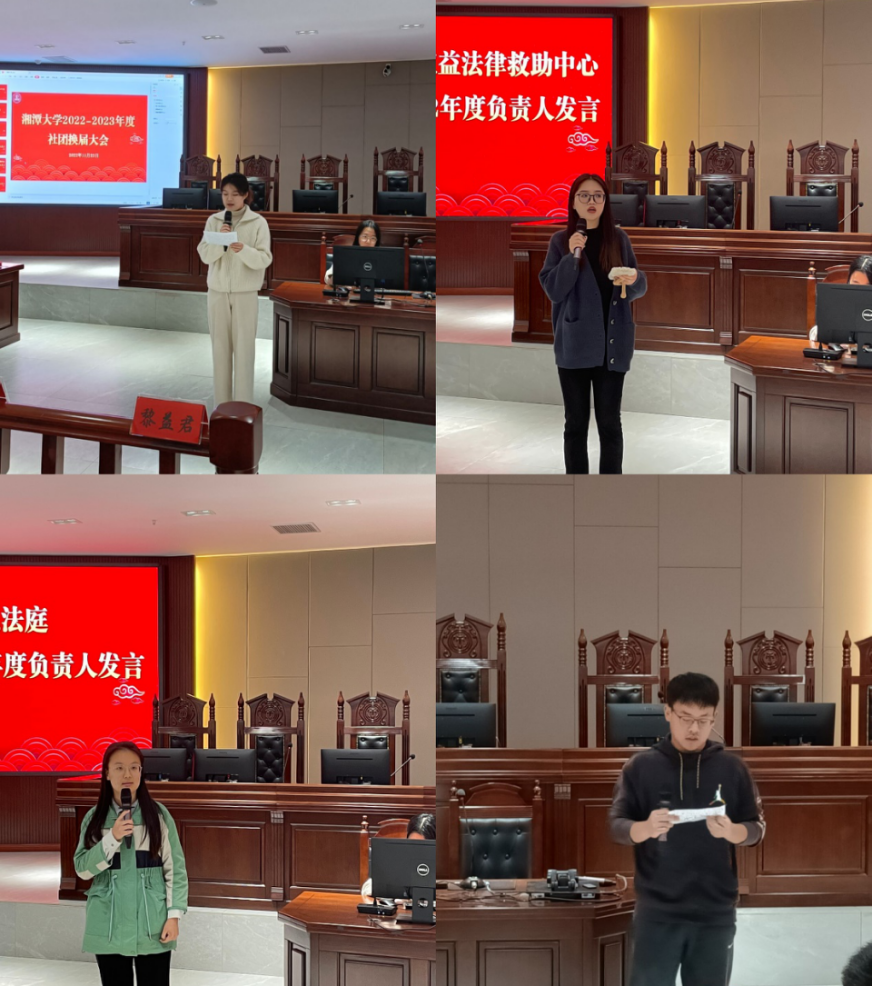 然后,法律咨询社负责人方夏天、社会权益法律救助中心负责人张阳、模拟法庭训练营负责人黄思颖、辩论队负责人许峻哲做年度工作总结。四位负责人分别对本社团的年度工作进行简要总结,分享了社团的亮点工作,也反思了工作中的不足之处,并对社团的未来发展提出建议。