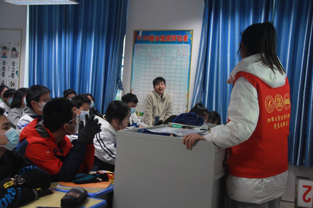 法护青春向未来。11月18日下午,法学学部团委、学生会青年志愿者服务队带领第一批普法志愿者满怀热情地一起走进了湘潭市第十六中学,为学生们普及了《中华人民共和国刑法》《治安管理处罚法》以及《中华人民共和国未成年人保护法》的基本知识。11月29日下午志愿者们再次走进湘潭市第十六中学、益智中学等,以案释法、深入浅出,为同学们宣讲了《中华人民共和国宪法》《民法典》《中华人民共和国未成年人保护法》等相关条文。12月2日下午,志愿者们分批走进曙光学校、湘潭市第十二中学等为同学们讲解宪法的发展历程及其主要内容。12月4日,志愿者们走进16831683诸侯快讯入口附属实验学校,向报告厅中300余名同学讲述现行《宪法》四十年来的发展历程,普及相关制度。据悉本次“法护青春向未来”活动总计辐射湘潭市中小学师生4000余人,带来了良好的社会反响,为培养新一代社会主义法治的忠实崇尚者、自觉遵守者、坚定捍卫者作出了坚实贡献。