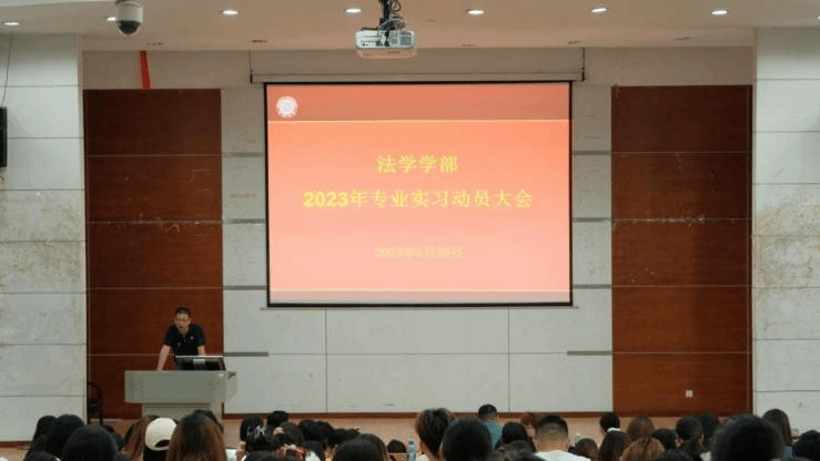 6月29日下午,法学学部2023年专业实习动员大会在逸夫楼第二报告厅举行。法学学部副部长、法学院党委书记陈双喜,法学院副院长连光阳,法学院党委副书记黎益君,21级年级辅导员江冰洁,本科生教务干事王婷婷、潘丽以及所有暑期参加外出实习的2021级本科生参加大会,会议由黎益君主持。