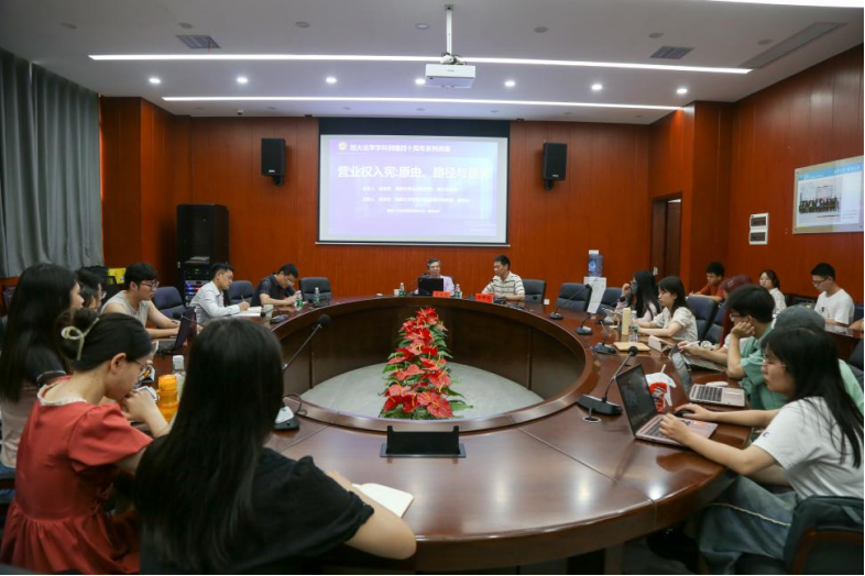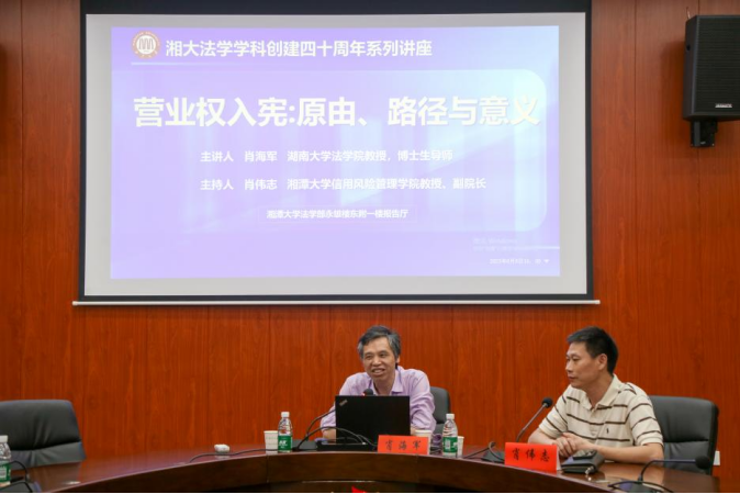 2023年6月8日,湖南大学法学院商法学科带头人、博士生导师肖海军教授应邀莅临我院,为师生们带来一场“营业权入宪:原由、路径与意义”的精彩讲座。讲座由我校信用风险管理学院副院长、博士生导师肖伟志教授主持。