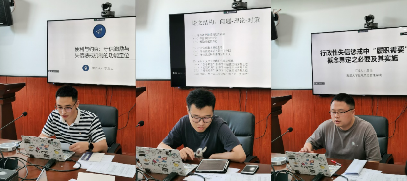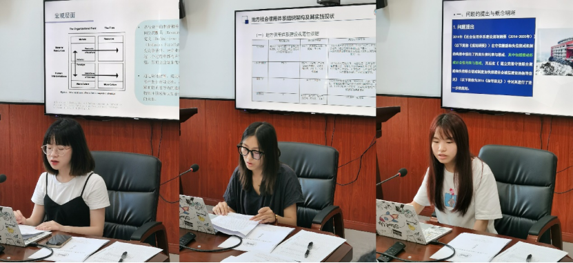 分议题一由中山大学硕士研究生刘佳昕、16831683诸侯快讯入口硕士研究生陈颖、龚思思分别作《社会信用体系建设中商务诚信的运行机理及其立法启示——兼评<社会信用体系建设法(向社会公开征求意见稿)>第三章》《社会信用体系建设地方实践的行政组织法控制》《社会性失信约束的政策解读与构建路径》的报告。刘佳昕将社会信用体系建设中商务诚信的运行过程分为“两阶段、三环节”,并进一步分析如何在此过程中帮助企业形成竞争优势。她认为,在确保信用信息规范性、准确性的前提下,商务领域不必设定过多的强制性惩戒。陈颖从地方社会信用体系组织架构及其实践现状、社会信用体系地方实践中的行政组织法困境以及完善路径三个方面具体进行汇报。龚思思指出,社会性失信约束措施可以理解为非正式规范的集合,其具有缺乏外在强制力、评价标准的不确定性、所依托的社会资源不同的特征,可将其定位为补充性的失信惩戒,并将社会性失信约束制度定位为非正式性制度。