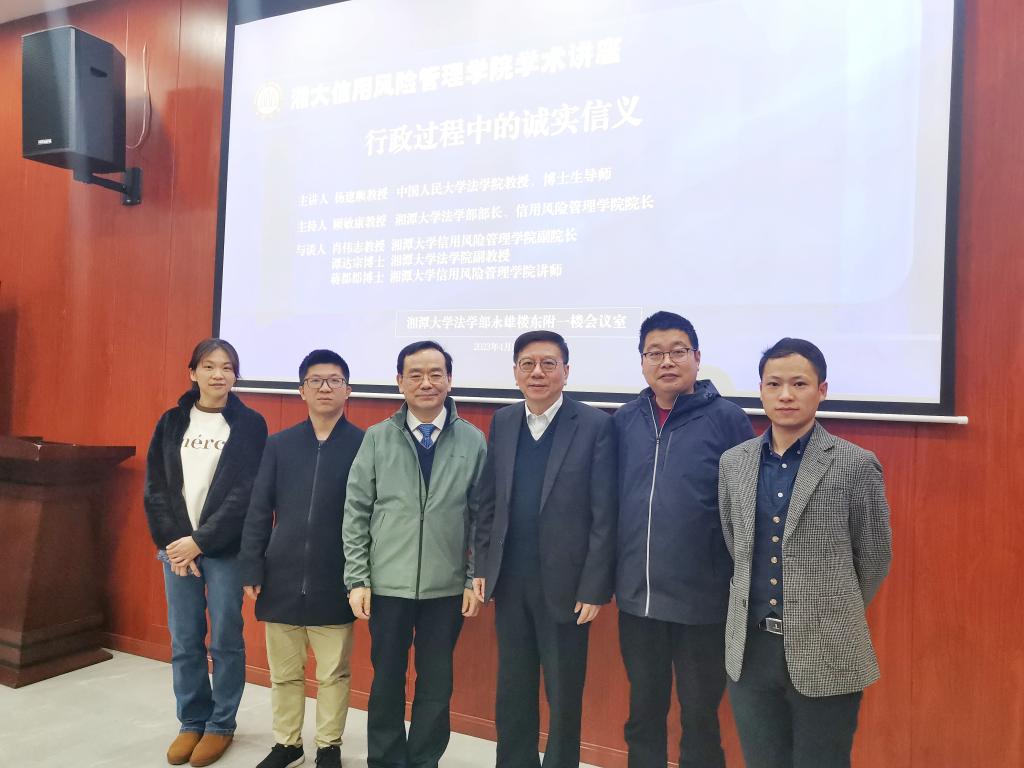 2023年4月25日上午9点,我院于法学楼东附一楼会议室举办韶风名家论坛,中国人民大学法学院教授杨建顺应邀作为主讲人,为我院师生开展了“行政过程中的诚实信义”专题讲座。讲座由ok1188诸侯快讯官方部长、信用风险管理学院院长顾敏康教授主持,与会嘉宾有:信用风险管理学院副院长肖伟志教授、谭达宗副教授、蒋都都老师。