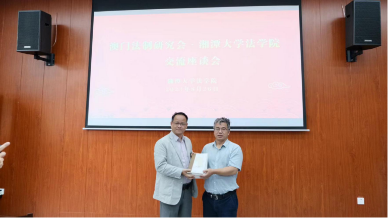 在讨论环节中,张小虎副主任首先就我校与澳门高校的合作现状和学校招收港澳台学生的政策进行了详细介绍。随后,蔡高强教授和郭炯老师对我院的国际法和非洲法学科建设进行了介绍,并探讨了双方在展开非洲葡语系国家法学研究方面的合作前景。宋彬龄副教授对体育法的研究内容和研究方向进行了介绍,强调我校在体育法领域的研究取得了一定的成绩,可以与澳门法制研究会展开合作。覃斌武教授表达了对两地学术交流的期许,并向澳门法制研究会询问了关于我院师生赴澳门进行学习交流的问题。陈华强会长对我院师生表示了欢迎,并重点介绍了内地师生赴澳交流学习的途径。