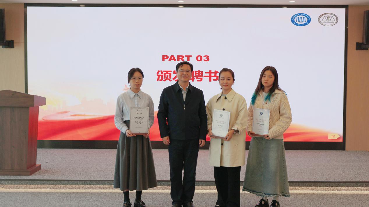 随后,廖永安副书记为珠海院友会会长曲红、副会长覃琴,秘书长周霞以及秘书处秘书周亚男、唐莹颁发聘书。