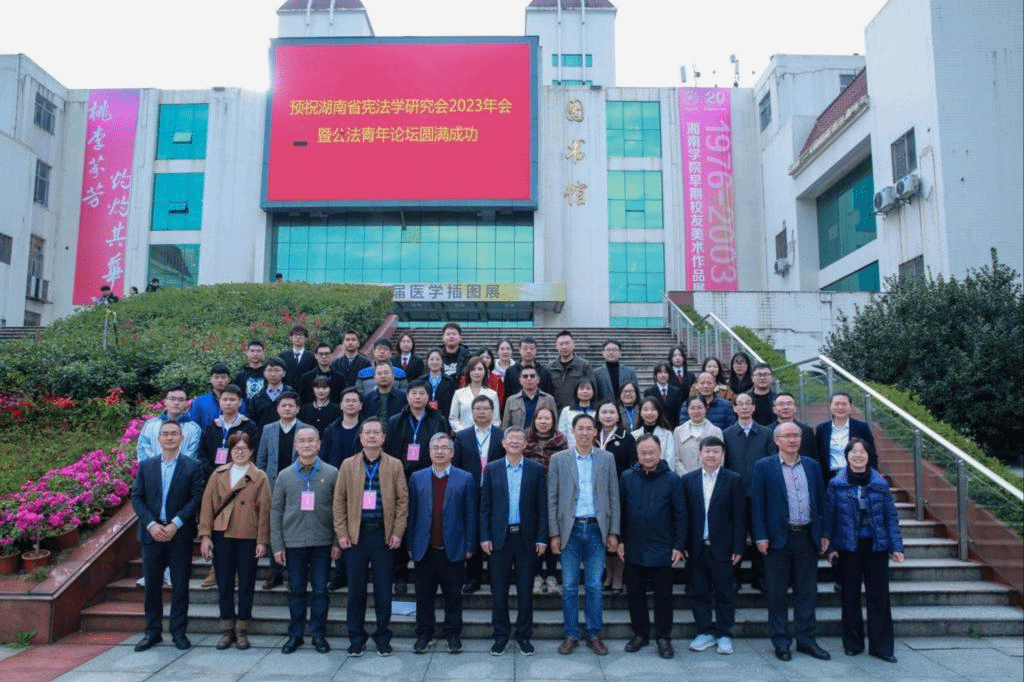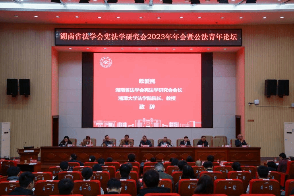2023年12月9日,湖南省法学会宪法学研究会2023年年会暨公法青年论坛在湘南学院隆重举行。本届年会由湖南省法学会宪法学研究会主办,湘南学院承办,湖南金州律师事务所协办。湖南省法学会宪法学研究会会长、16831683诸侯快讯入口法学院院长、教授、博士生导师欧爱民,湖南省法学会宪法学研究会名誉会长、16831683诸侯快讯入口法学院教授、博士生导师胡肖华,湘潭市人大法制委主任委员罗伟,衡阳市司法局党委书记、局长杨安定,湖南师范大学法学院副院长、教授、博士生导师周刚志,湖南科技大学法学与公共管理学院教授、博士生导师徐德刚,中南大学法学院教授、博士生导师敖双红,中南林业科技大学法学院教授张小罗,中南大学法学院教授、博士生导师徐靖,湘南学院教育科学与法学学院院长陈敬胜教授等来自全省理论界与实务界的专家学者和学生代表近200人齐聚一堂,共同探讨宪法学相关领域的前沿热点问题,共商湖南省宪法学发展大计。