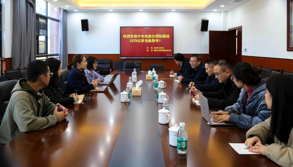 法学院党委书记陈双喜对中央电视台国际频道记者的来访表示热烈欢迎。他介绍了湘大法学的基本情况及特色,并指出湘大法学院勇立湖湘法学教育潮头被誉为“南方法学明珠”,非洲法研究作为湘大法科的品牌,主动对接国家需要,积极服务中非交流,特色鲜明,成就显著,具有较大的国内国际影响力。