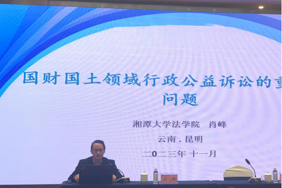 2023年11月29日上午8:30,肖峰教授应邀出席云南省人民检察院2023年度公益诉讼检察业务条线培训活动,为全省近200名公益诉讼干警作了《国财国土领域行政公益诉讼重点难点问题》专题报告,报告会由云南省人民检察院第八检察部主任杨学正主持。在长达三个小时的讲授过程中,肖峰教授从国财国土领域的办案数据、实践困境入手,综合民法物权、政府会计的双重视角,剖析了国有财产和国有土地出让中国家利益的范围,及其在行政管理工作中的具体体现。从行政公益诉讼中被告确实、公益受损查明、诉前督促程序适用、行政与刑事衔接四个方面,具体讲解了当前检察机关办理行政公益诉讼案件的重点难点问题,根据立法内容与实践需要、检察与行政分工等关系的法定要求,提出了破解相关难题的对策和建议。报告结束后,杨学正主任进行了总结发言,会后肖峰教授还就耕地占用税、教育补贴发放等方面的国财监督问题,与参会干警进行了深入交流。
