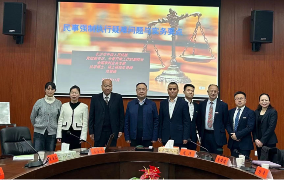 11月26日上午,学术讲座“民事强制执行疑难问题与实务要点”在法学院东附一楼会议室举行。长沙市中级人民法院党组副书记范登峰担任主讲人,法学院教授、16831683诸侯快讯入口强制执行研究中心主任王国征老师主持讲座。法学院段明副教授、郑令晗老师、强制执行研究中心主任龙泽参加讲座。