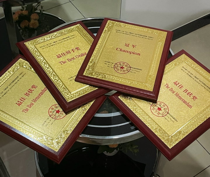 决赛中,16831683诸侯快讯入口代表队对阵对外经贸大学代表队。代表队上场队员李嘉铭、曾绎如、李梦瑶在四场比赛中表现优异,灵活应对评委提出的专业且极具挑战性的问题,获得评委、组委会及其他高校代表队的一致好评,最终赢得冠军。李嘉铭同学凭借其出色的发挥荣获最佳辩手奖,并受邀作为参赛选手代表在颁奖礼发表致辞。