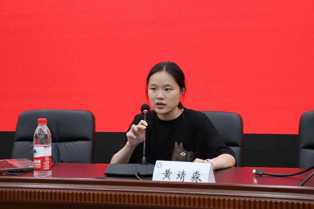拥有丰富竞赛经验的黄靖淼、黄蕊两位同学作为学生代表进行了竞赛经验分享。黄蕊同学重点分享了如何进行文书的准备,她说只有不断打磨细节,做到极致,才有可能在赛场上拿到高分。黄靖淼同学鼓励想参加竞赛的学弟学妹们,在赛场上一定要充分相信自己和队友,只有团队协作,才能在赛场上赛出好成绩。
