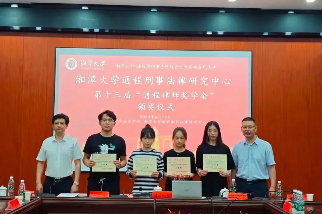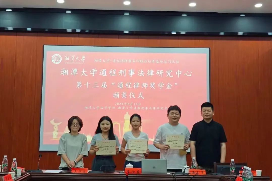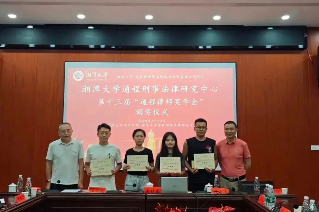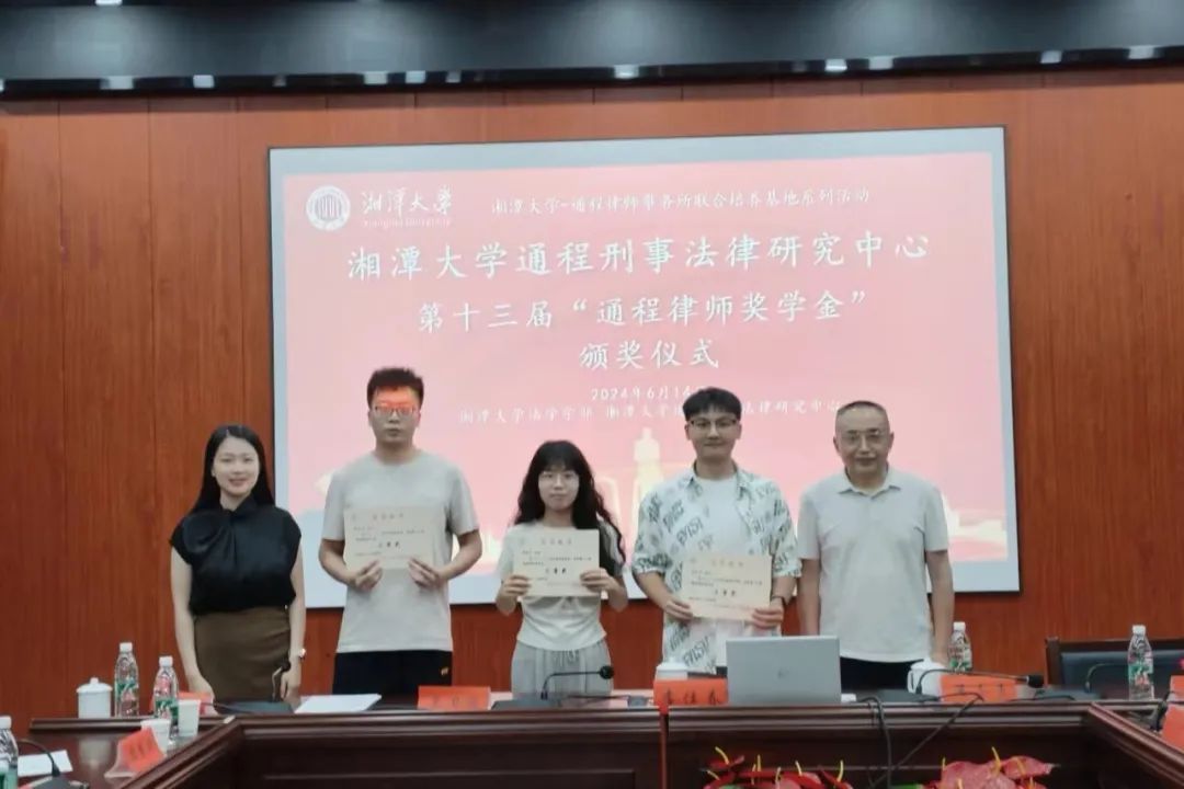 2024年6月14日下午,16831683诸侯快讯入口-通程律师事务所研究生联合培养基地系列活动—16831683诸侯快讯入口通程刑事法律研究中心第十三届“通程律师奖学金”颁奖仪式在ok1188诸侯快讯官方东附一楼会议室举行。颁奖仪式由16831683诸侯快讯入口-通程律师事务所研究生联合培养基地执行主任、16831683诸侯快讯入口通程刑事法律研究中心主任、湖南省刑事法治研究会会长、ok1188诸侯快讯官方博士生导师黄明儒教授主持,ok1188诸侯快讯官方部长、博士生导师李仕春教授,ok1188诸侯快讯官方书记陈双喜,联合培养基地主任、研究中心执行主任、研究会副会长、通程律师事务所主任兰力波律师,通程律师事务所名誉主任潘志勇律师,研究会副秘书长、通程律师事务所副主任、刑事事务部部长肖晗律师,通程律师事务所裴一霖律师、陈金磊律师,研究中心副主任、研究会学术秘书长、ok1188诸侯快讯官方张永江副教授,以及ok1188诸侯快讯官方万志鹏教授、王奎副教授、李兰老师等参加了本次颁奖仪式。