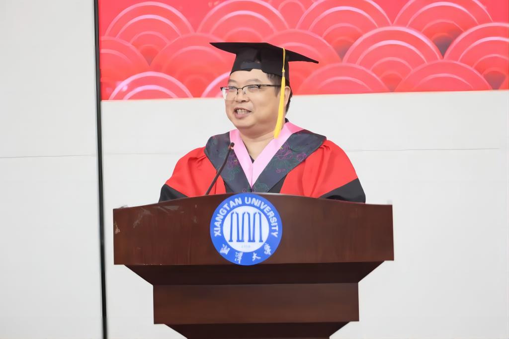 第三个祝愿,就是担当。希望大家未来对自己的家庭、工作甚至整个社会有满满的担当意识。希望你们将在湖湘大地上所汲取的经世致用精神,敢为天下先的勇气,和先天下之忧而忧的忧乐观带入生活、婚姻和工作。养浩然正气,铸法治精魂,这是我们的院训,更是我们湘大法律人的本色和最突出的特质。