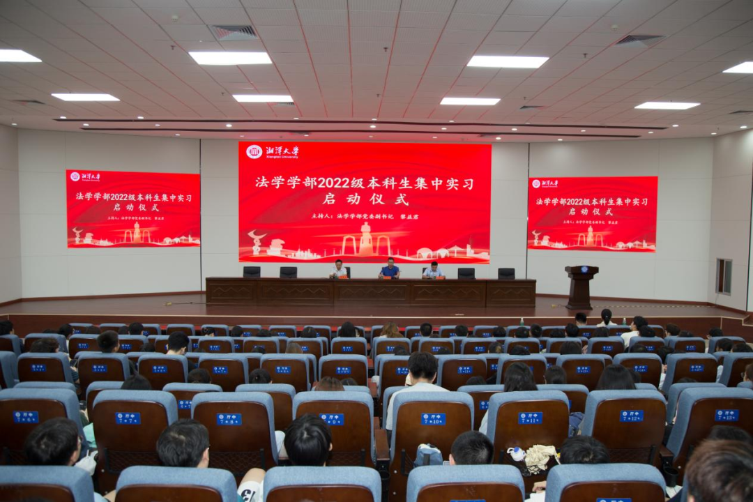 7月3日下午14:30,法学学部在研究生院报告厅举行2022级本科生集中实习启动仪式。法学学部党委书记陈双喜、副部长连光阳、党委副书记黎益君、团委书记史崧正、本科生教务办主任王惟郅、2022级年级辅导员老师安璐,以及法学学部2022级本科生、兴湘学院2022级法学专业本科生参加了启动仪式,会议由黎益君副书记主持。
