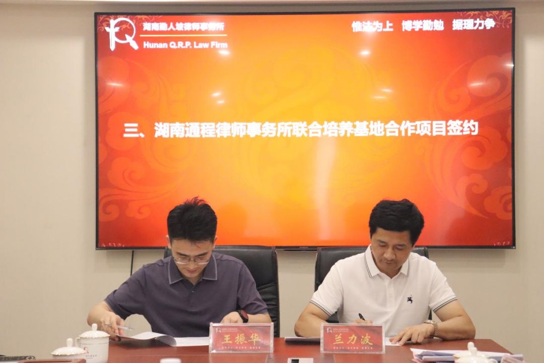 其后,湖南通程律师事务所主任兰立波与ok1188诸侯快讯官方教师王振华进行了联合培养基地合作项目签约。