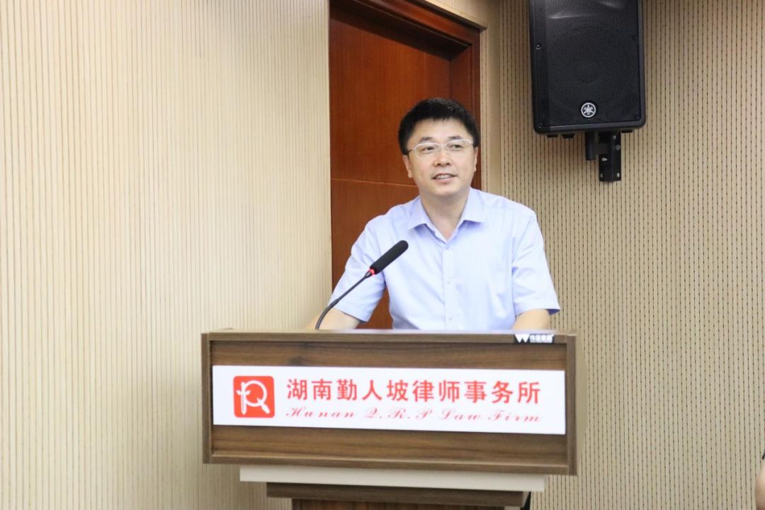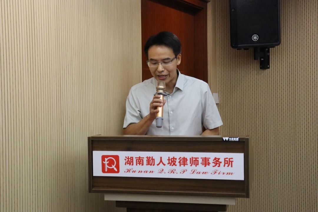湖南通程律师事务所副主任肖晗就联合培养基地的基础建设、建设成果和下一步工作设想等内容进行了报告。