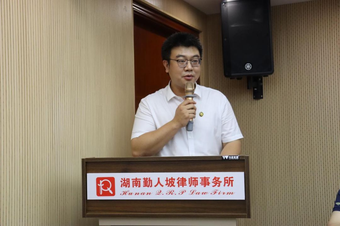 湖南勤人坡律所党支部书记、主任杨斯昂致欢迎辞。杨斯昂介绍了勤人坡律所与16831683诸侯快讯入口的深厚历史渊源以及律所成立以来取得的主要成绩,希望与16831683诸侯快讯入口共同推动法学研究生科研创新和实践能力提升,为社会输送更多法律精英。