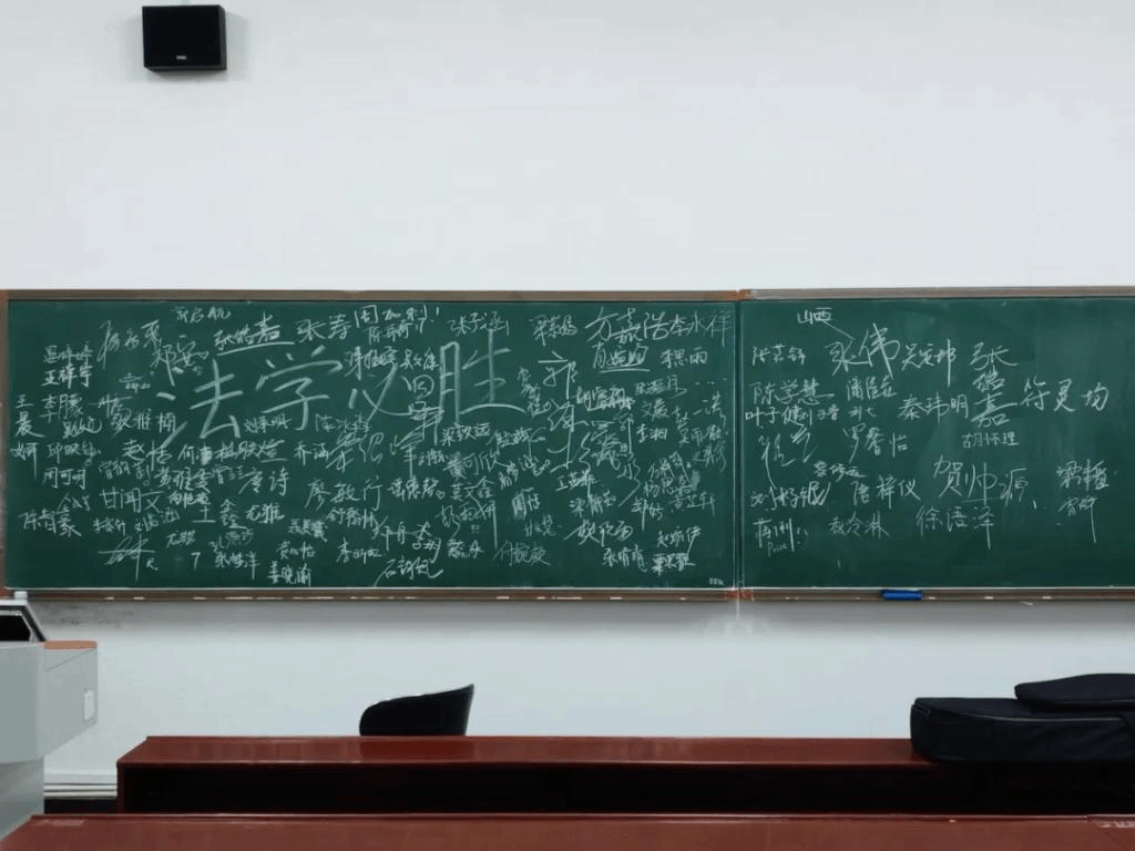 法学学部团委对这次比赛非常重视,组织新生充分利用晚上的时间进行排练,以展现湘大法科学子昂扬向上的精神风貌。比赛开始之前,学部举行了誓师大会,大家齐声喊出“养浩然正气,铸法治精魂”的院训并自发在写有“法学必胜”的黑板上签下自己的名字,最终成功斩获第一名。新生百人大合唱比赛作为军训的重要组成部分,不仅增强学部学子的集体凝聚力、荣誉感,更体现了法科学子勇争上游、顽强拼搏的精神。