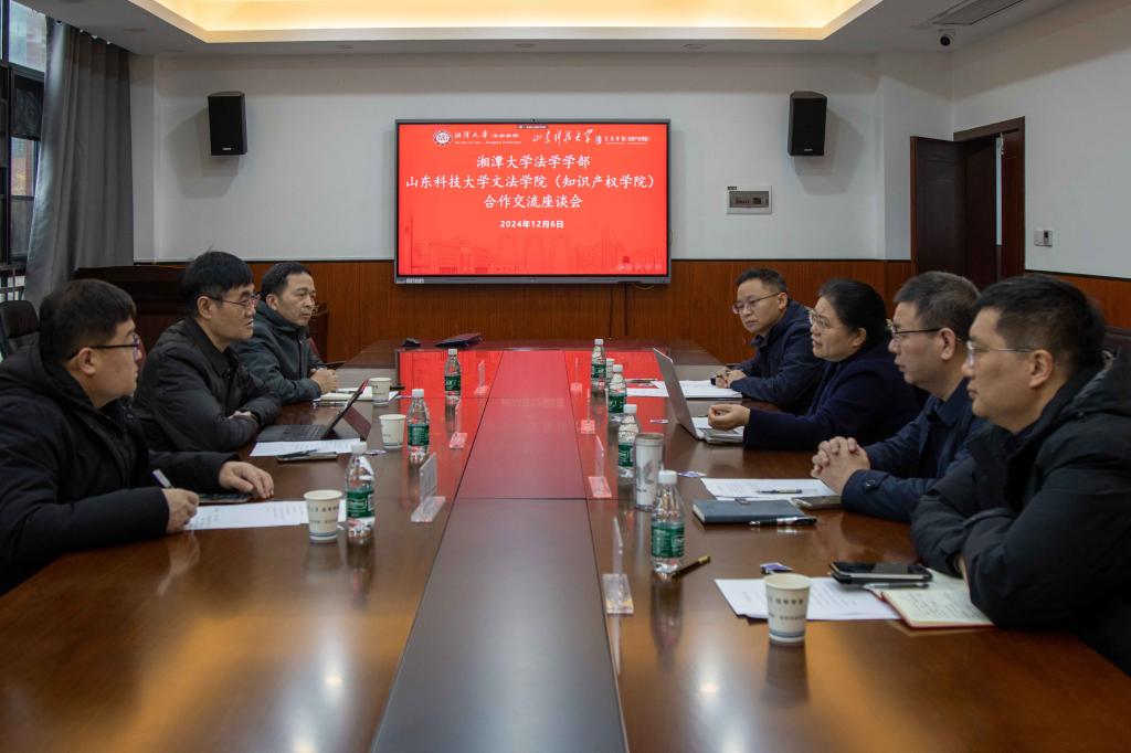 孙法柏院长对法学学部的热情安排表达了感谢,并简要介绍了山东科技大学文法学院(知识产权学院)的基本情况,表示湘大法学在办学模式、人才培养、学科建设方面特色鲜明,值得学习和借鉴。