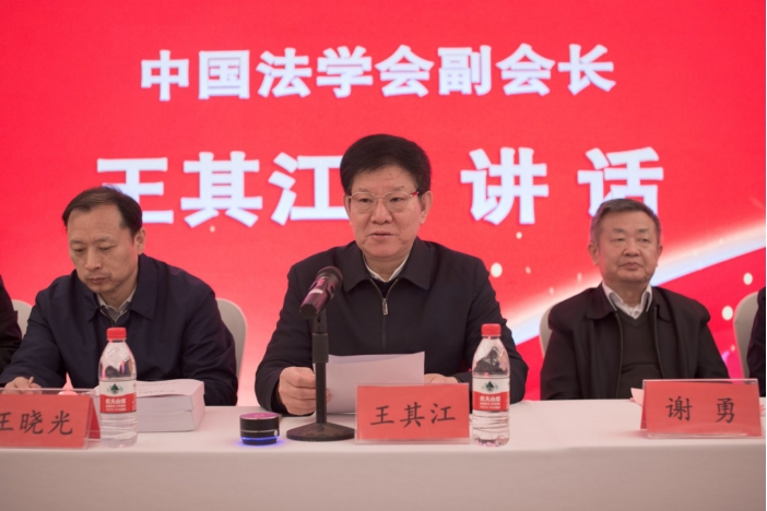 中国法学会党组成员、副会长王其江作重要讲话。王其江副会长充分肯定了16831683诸侯快讯入口创办全国法科学生社会调研大赛的担当精神,并对法科学子们提出了三点希望:立大志,坚定习近平法治思想的正确引领;明大德,坚持德法兼修提升法治素养;担大任,努力成为新时代合格的法治人才。希望广大青年学子紧密结合新时代全面依法治国新要求,坚持问题导向、实践导向、目标导向,为推动法治理论创新、丰富法治实践形态作出积极努力,担当起当代青年应当担负的时代使命,在建设法治中国的宏伟征程中贡献青春力量。