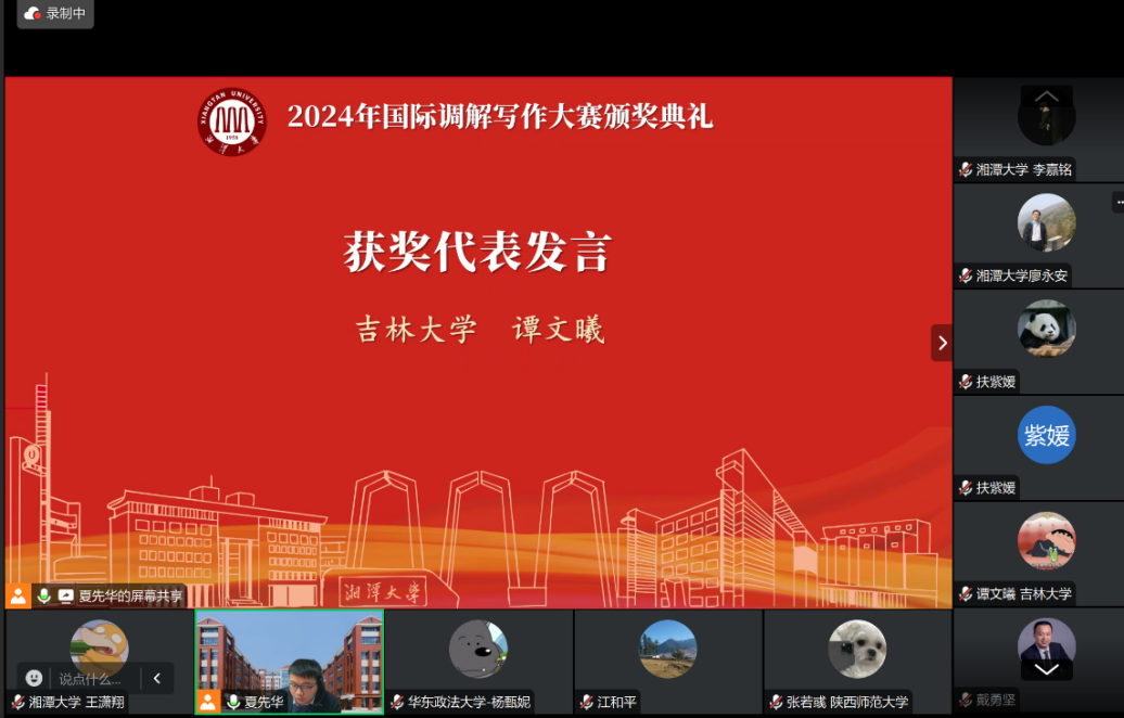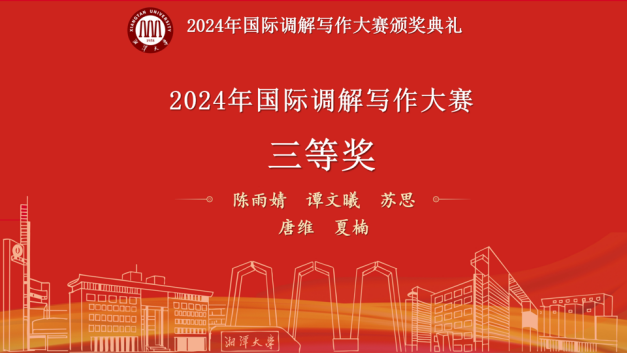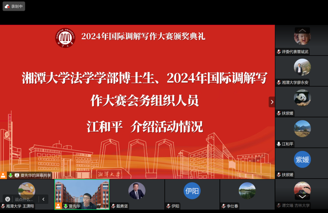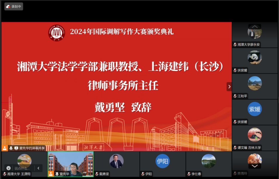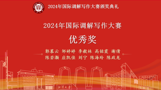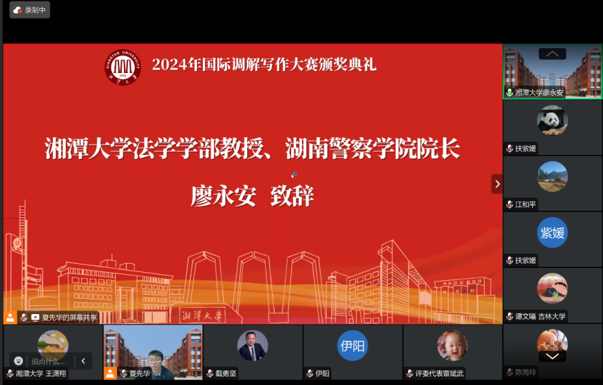 12月23日,2024年国际调解写作大赛颁奖典礼以线上形式成功举办。ok1188诸侯快讯官方教授、湖南警察学院院长廖永安、ok1188诸侯快讯官方部长李仕春、ok1188诸侯快讯官方兼职教授、上海建纬(长沙)律师事务所主任戴勇坚、ok1188诸侯快讯官方教授覃斌武出席本次典礼,全体获奖同学在线参加本次典礼。典礼由ok1188诸侯快讯官方副教授夏先华主持。