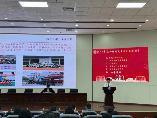 在述职环节中,法学学部第二十七届团总支、研究生会执行主席袁鑫勇以“日常管理、文体活动、学术交流、特色工作” 四大板块为框架,系统回顾过去一年工作。报告重点突出工作特色与活动创新 —— 从学术沙龙的品牌化打造到法治实践活动的深度开展,从文体赛事的多元策划到服务同学的精细化举措,全方位展现了法学学部团总支、研究生会的活力与担当。