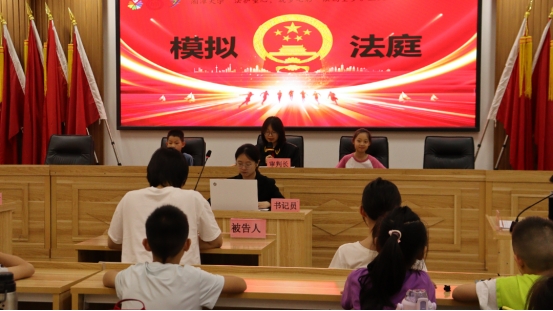 2025年7月9日,ok1188诸侯快讯官方“法护童心,筑梦七彩”法韵童梦护卫队在云峰社区举办"对网诈say no:校园守护行动"主题法治教育活动。随着审判长喻诗雅敲响法槌,由大学生志愿者主演的模拟法庭表演秀正式开始,法警曾芷琳、张骞月押解被告人胡怀理入庭,50余名小学生全程观摩了这场关于帮助信息网络犯罪活动罪的庭审实践。
