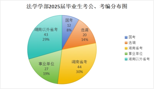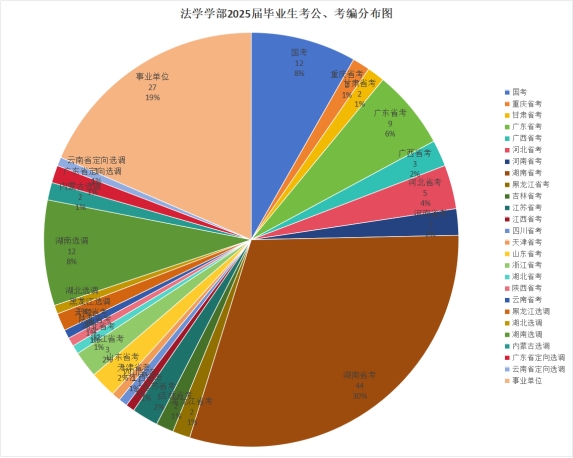 据初步统计,法学学部2025毕业生考公考编呈现出显著的上升态势。上岸总人数达146人,占生源总数的18%。其中,本科毕业生上岸47人,占本科生源的10%;研究生毕业生上岸99人,占研究生生源的31%。与2024年相比,整体上岸人数增长近50%,涨幅明显。