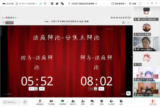 从初赛到复赛,战况愈演愈烈。进入复赛与半决赛阶段,赛场气氛更是紧张而焦灼。各支队伍依托线上平台,围绕复杂的案情,展开了激烈的言辞交锋。在法庭辩论环节,队员们引经据典,唇枪舌剑,围绕争议焦点展开了一场场智慧与口才的较量。每一次精准的提问,每一次有力的反驳,都展现了湘大法学学子扎实的理论功底和敏捷的思辨能力。这不仅是技术的比拼,更是团队协作与心理素质的综合考验。