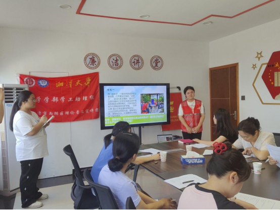 7月1日,宣讲团走进九华街道合山社区,合山社区正在举行庄重而热烈的党员表彰大会。大会上,学工助理组团队成员借此机会为各位党员同志精心准备了宣讲,深入解读基层民主协商制度,强调其在我国社会主义民主政治体系中的关键地位,指出这一制度是实现人民当家作主的重要路径,能让群众深度参与基层事务决策、管理与监督。