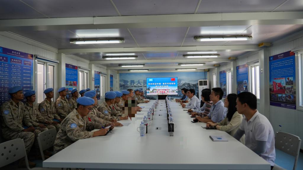 在南苏丹期间,我校代表团先后赴中国驻南苏丹大使馆、中国第十一批赴南苏丹(朱巴)中国维和步兵营、中国石油非洲公司南苏丹项目部、中国援南苏丹医疗队、中国援南苏丹朱巴教学医院改扩建项目部等单位调研,并向2016年在维和任务中牺牲中国官兵李磊、杨树朋两位烈士敬献鲜花致以哀思。