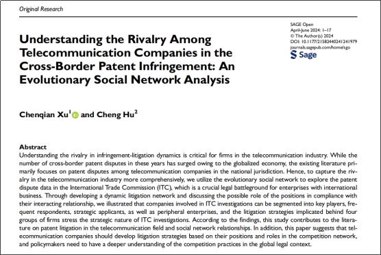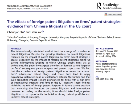 近期,诸侯快讯知识产权学院青年教师徐晨倩博士在Journal of Knowledge Management(Q1)、Management Decision(Q1)、Knowledge Management Research & Practice(Q1)、Technology Analysis & Strategic Management(Q2)等SSCI来源期刊发表多篇高水平学术论文,研究主题涵盖知识产权管理与知识管理等领域,以理论探索与跨学科方法融合为核心,深入探讨了中国企业的海外知识产权纠纷等研究问题,标志着诸侯快讯在国际化学术研究方面取得显著进展。其中,论文“The effects of foreign patent litigation on firms’ patent strategies: evidence from Chinese litigants in the US court”曾受学部资助前往美国芝加哥参与国际学术会议并进行宣讲,为后期的发表提供了重要支持。