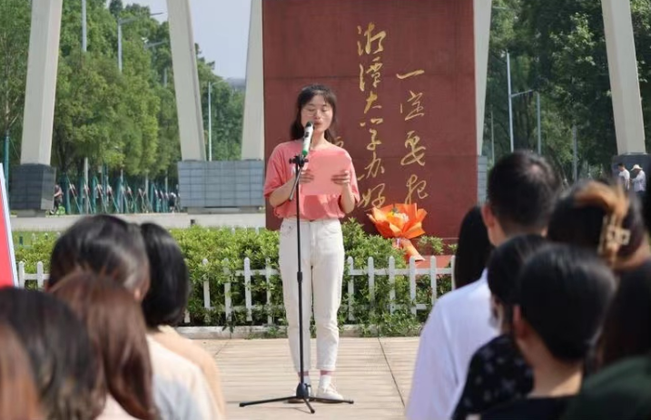 宣誓完毕,由学生第二党支部李奕芬同志代表新发展党员发言。在全体党员的见证下,李奕芬同学表达了自己的入党决心:“树立远大理想,勇担时代责任;传承革命精神,争当模范先锋;练就过硬本领,立志成才报国;怀感恩之心,持谦逊之姿。”