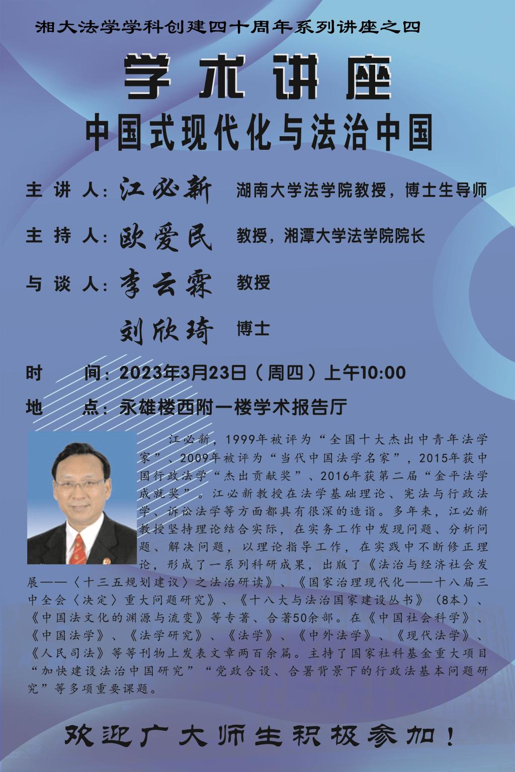【湘大法学学科创建四十周年系列讲座之四】江必新:中国式现代化与法治中国