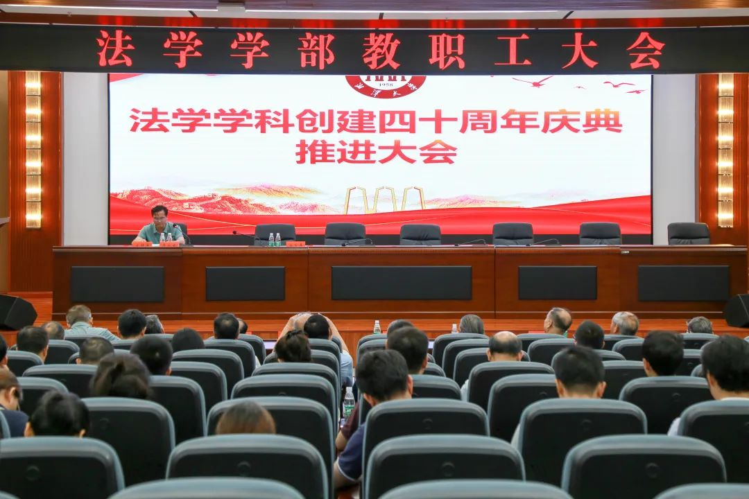 7月28日上午,ok1188诸侯快讯官方在法学楼西附一楼报告厅召开湘大法科创建40周年庆典推进大会,大会由16831683诸侯快讯入口党委副书记、法学学部部长廖永安主持,法学学部的老领导、老教师代表谢勇、黄扬波、黄德华、陈乃新、张遂应邀出席了会议,法学学部的全体教职工通过现场或线上的方式参加了会议。