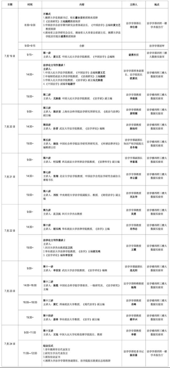 第二届全国法学青年教师论文写作高级研修班暨研究生暑期学校日程