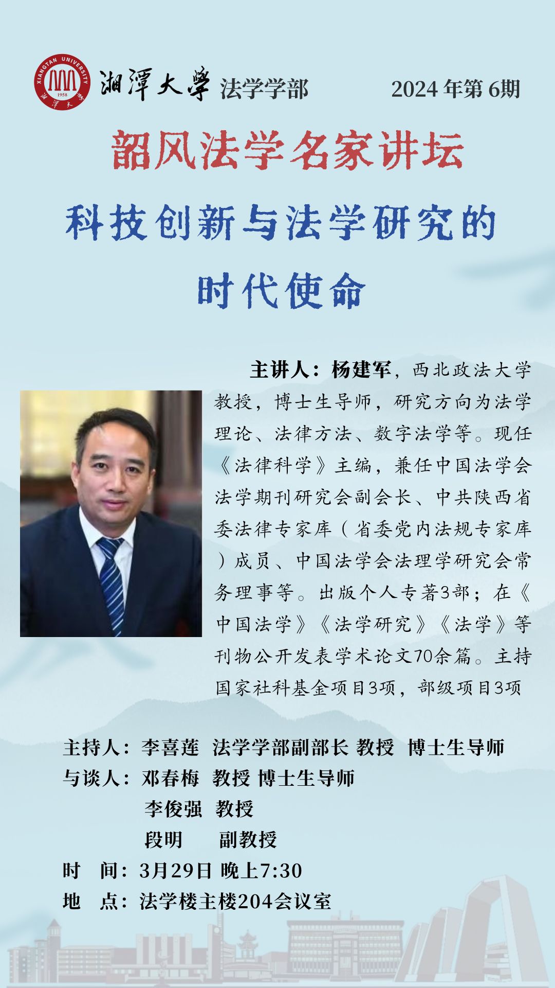 【韶风法学名家讲坛】杨建军:科技创新与法学研究的时代使命