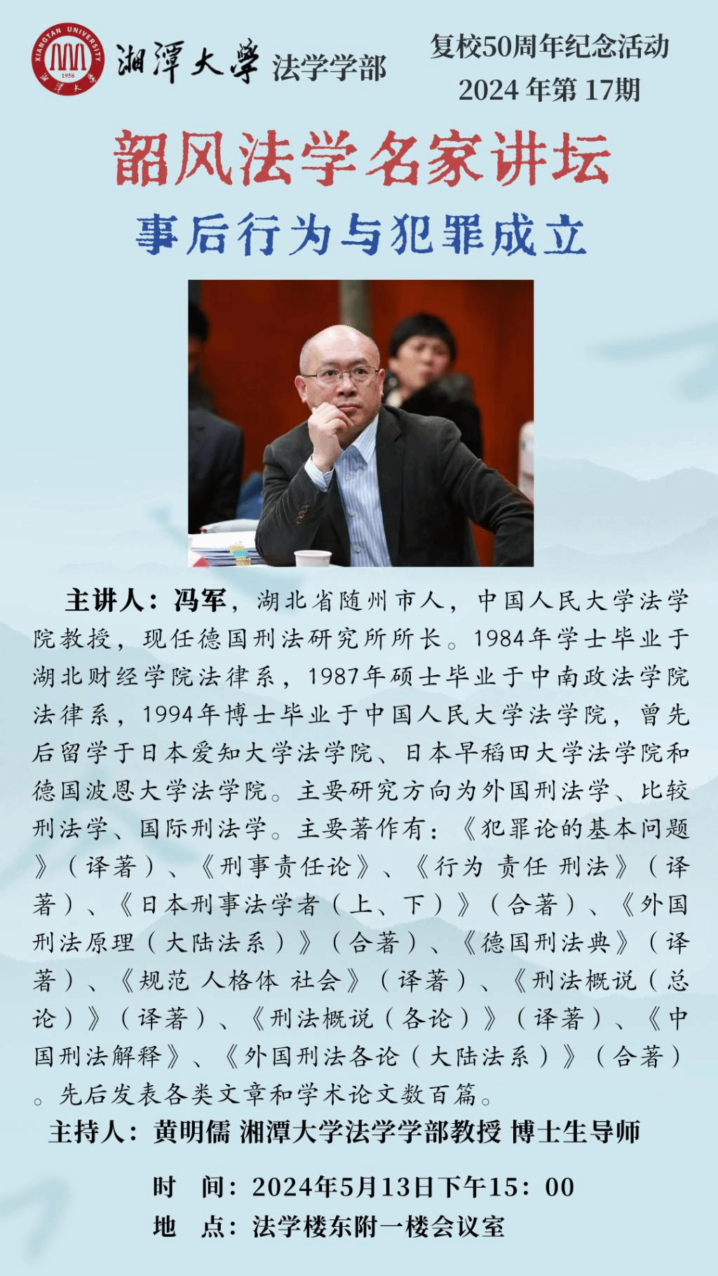 【韶风法学名家讲坛】冯军:事后行为与犯罪成立