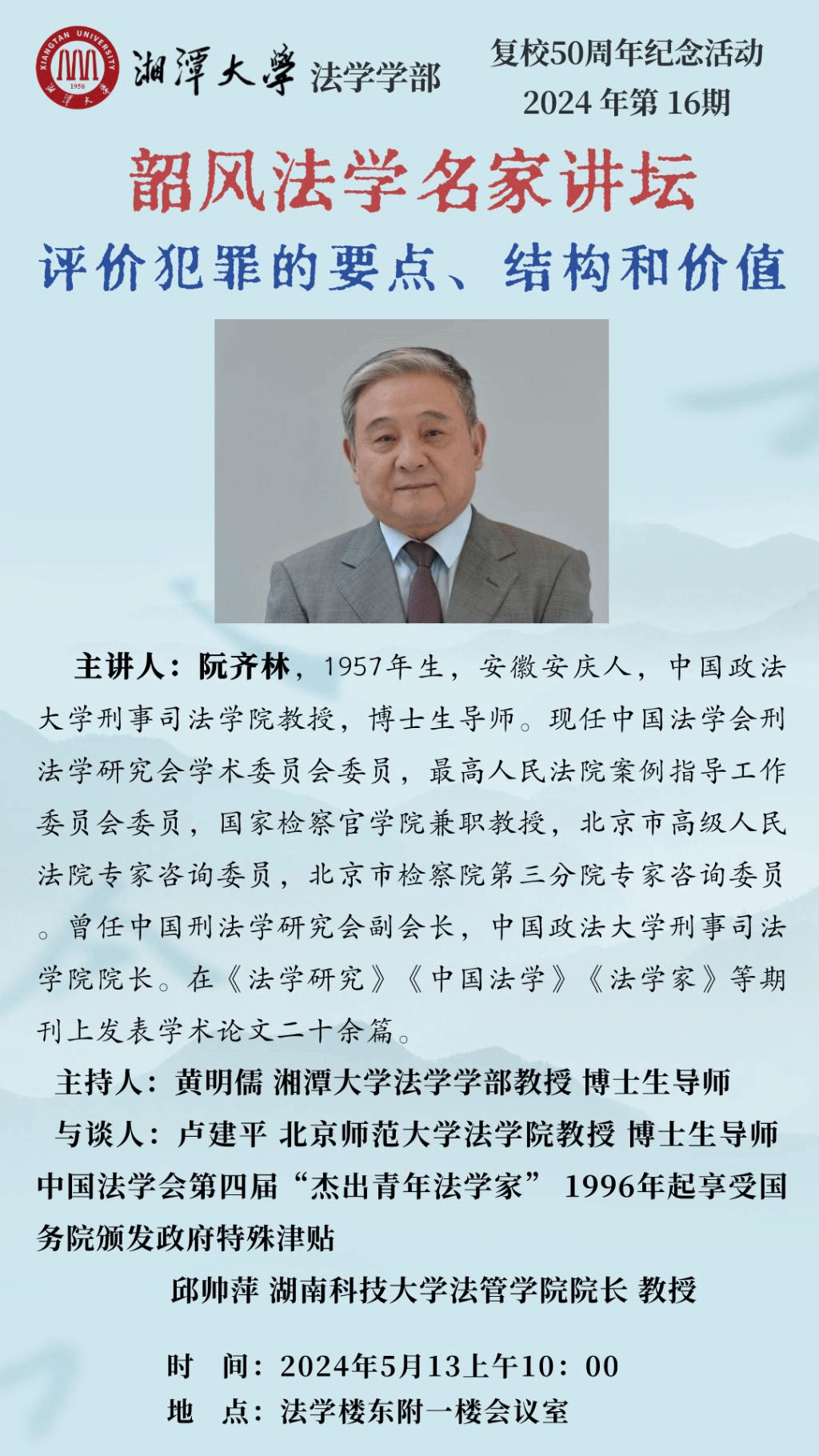 【韶风法学名家讲坛】阮齐林:评价犯罪的要点、结构和价值