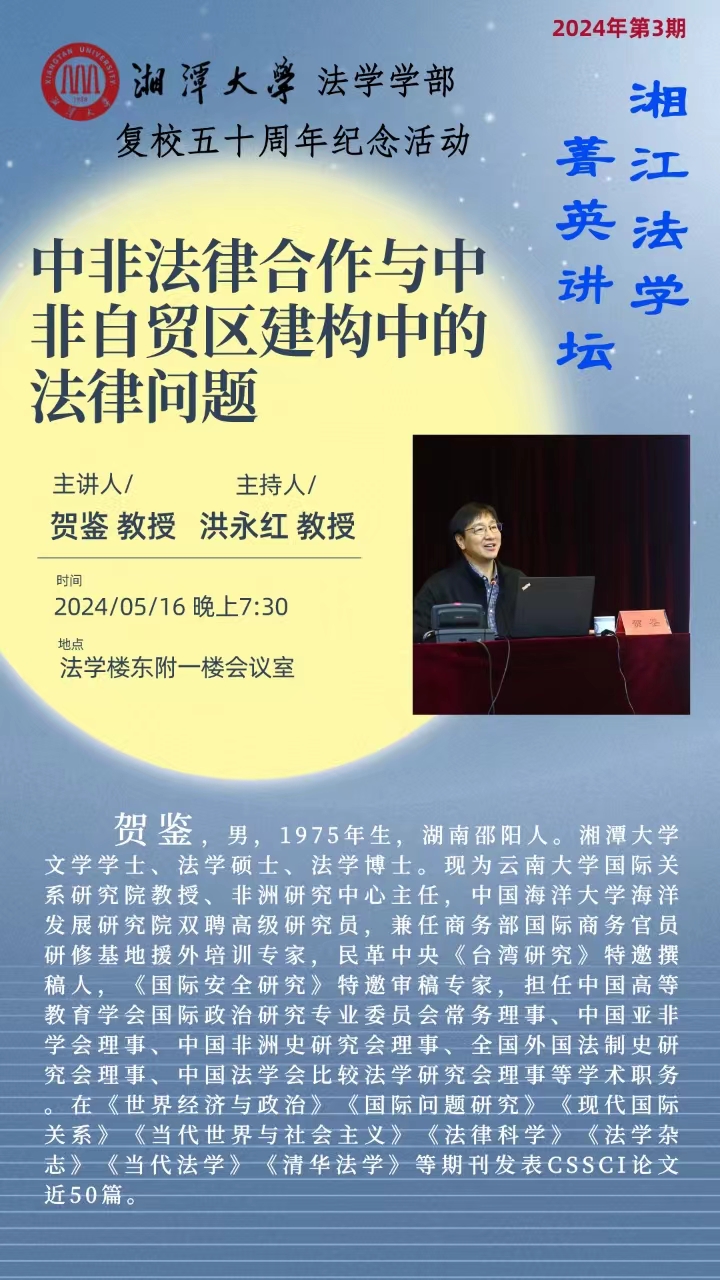 【湘江法学菁英讲坛】贺鉴:中非法律合作与中非自贸区建构中的法律问题