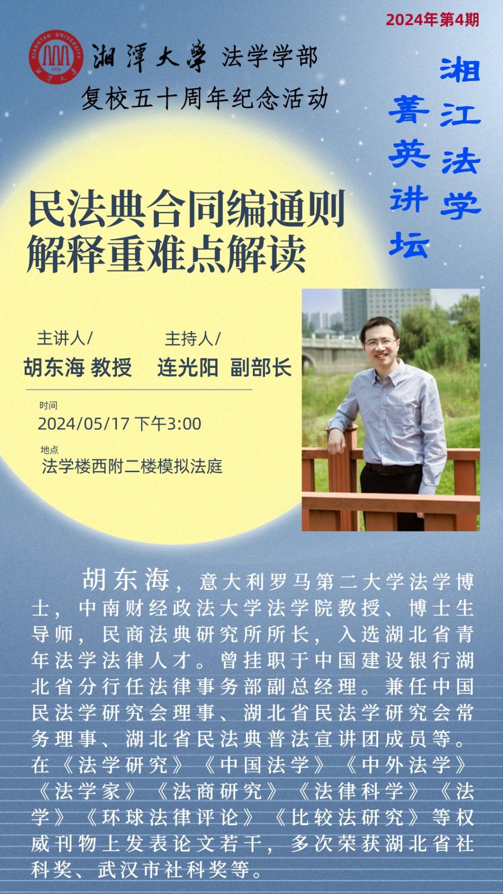 【湘江法学菁英讲坛】胡东海:民法典合同编通则解释重难点解读