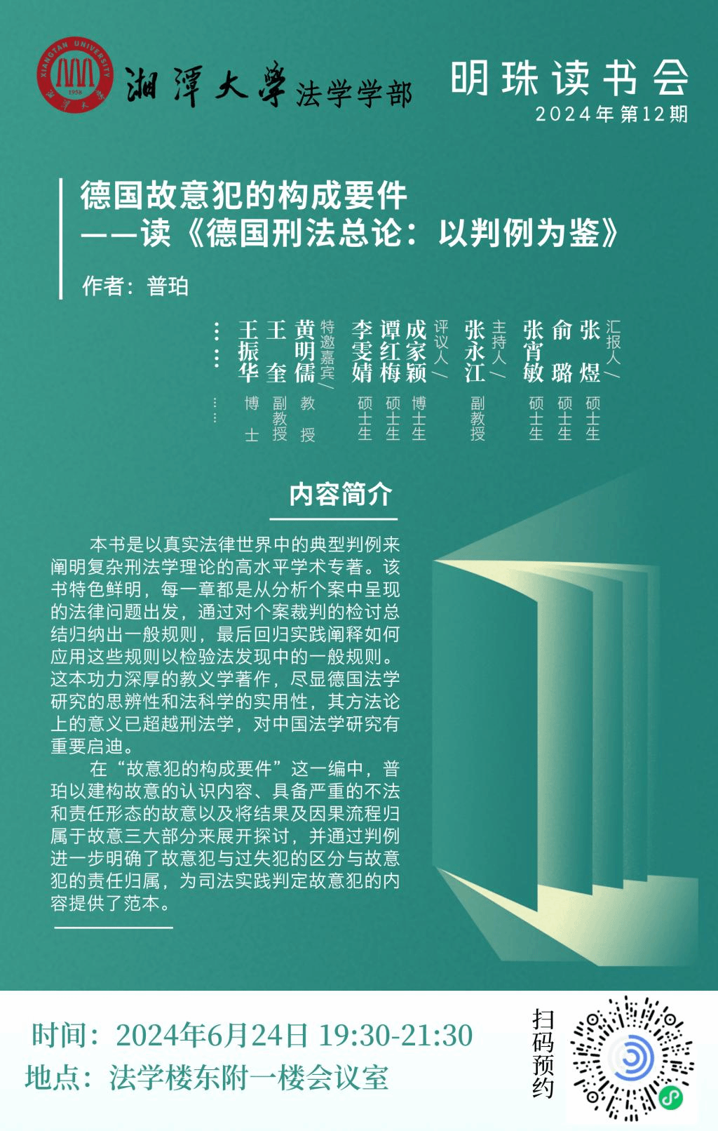 【明珠读书会】2024年第12期:德国故意犯的构成要件——读《德国刑法总论:以判例为鉴》
