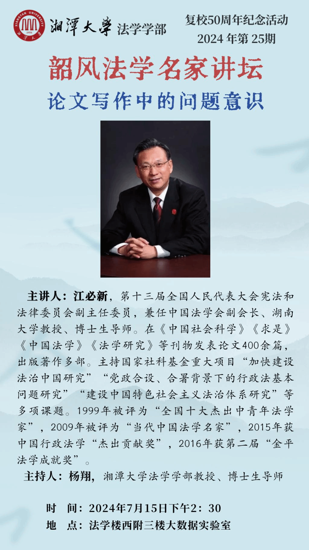 【韶风法学名家讲坛】江必新:论文写作中的问题意识