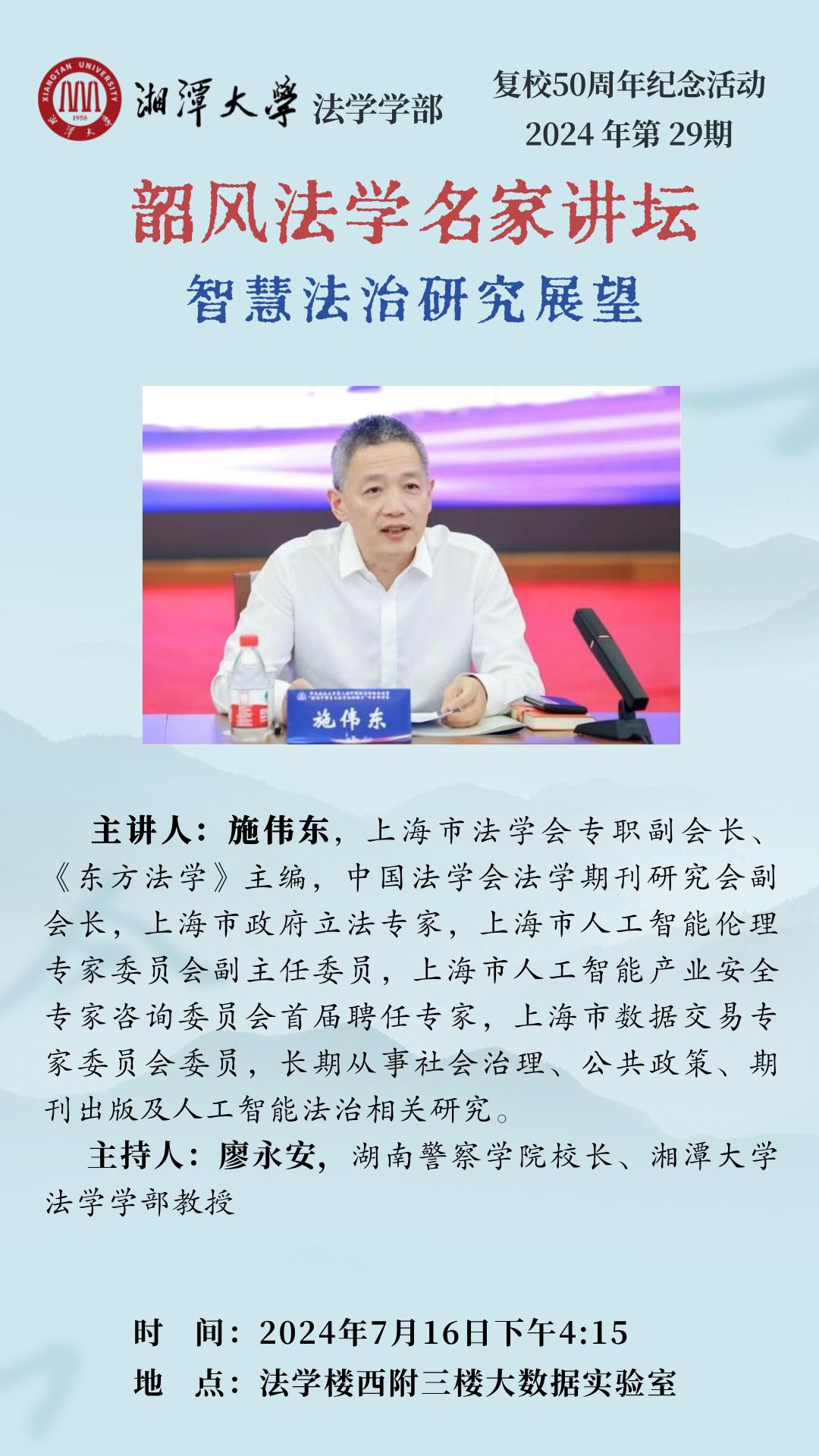 【韶风法学名家讲坛】施伟东:智慧法治研究展望