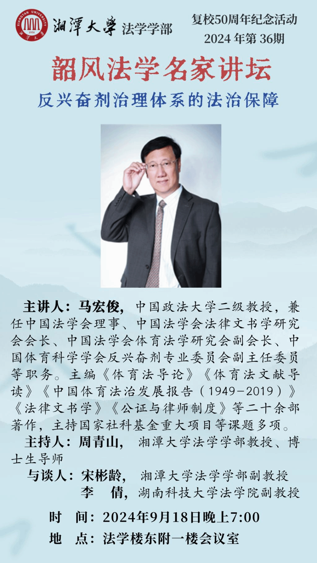 【韶风法学名家讲坛】马宏俊:反兴奋剂治理体系的法治保障