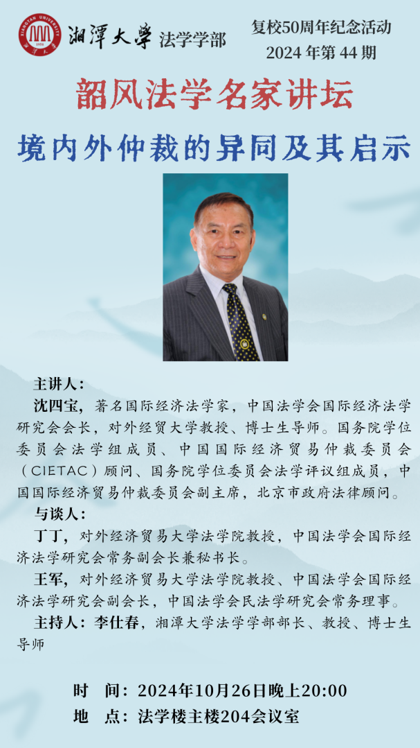 【韶风法学名家讲坛】沈四宝:境内外仲裁的异同及其启示