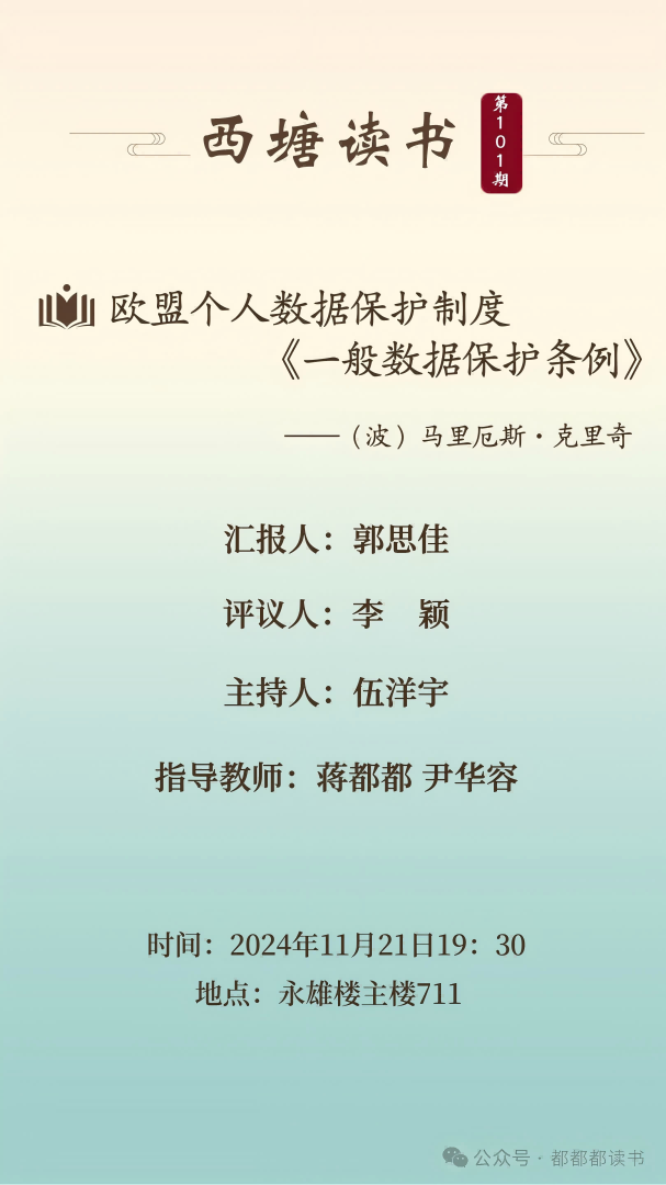 【西塘读书】第101期:欧盟个人数据保护制度 《一般数据保护条例》