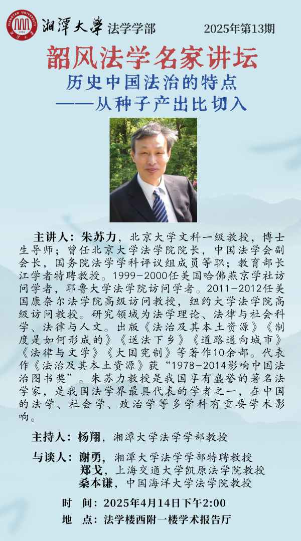 【韶风法学名家讲坛】朱苏力教授做客韶风法学名家讲坛第13期