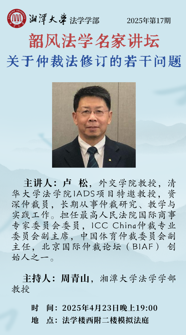 【韶风法学名家讲坛】卢松:关于仲裁法修订的若干问题