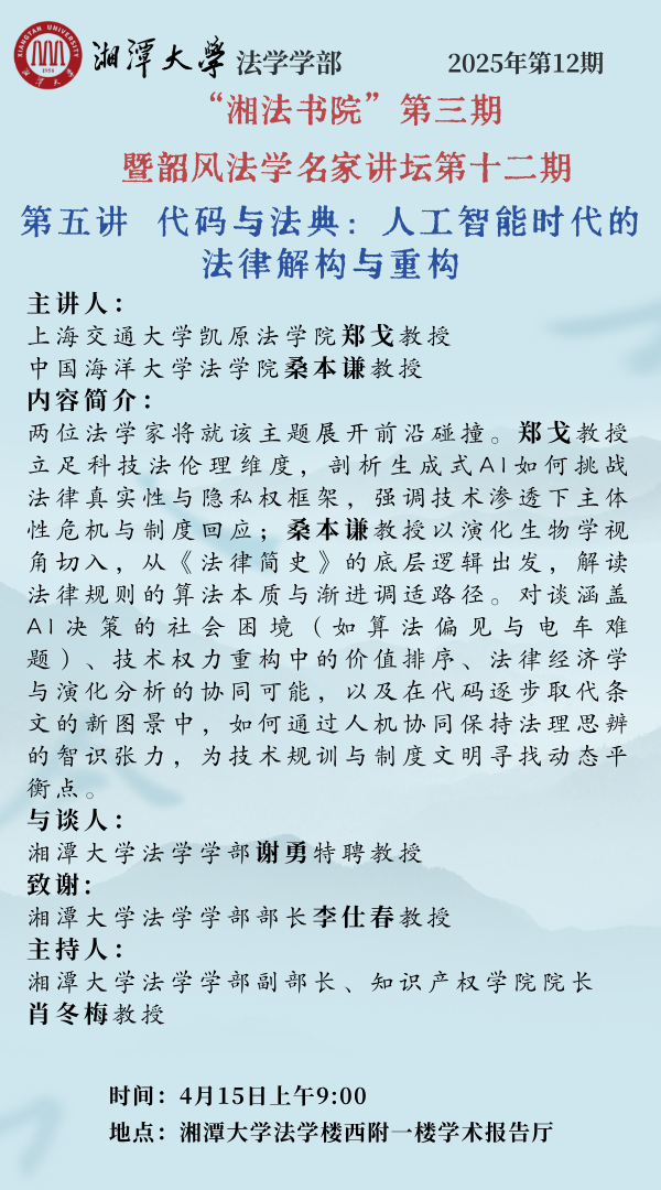 【韶风法学名家讲坛】郑戈、桑本谦:代码与法典:人工智能时代的法律解构与重构